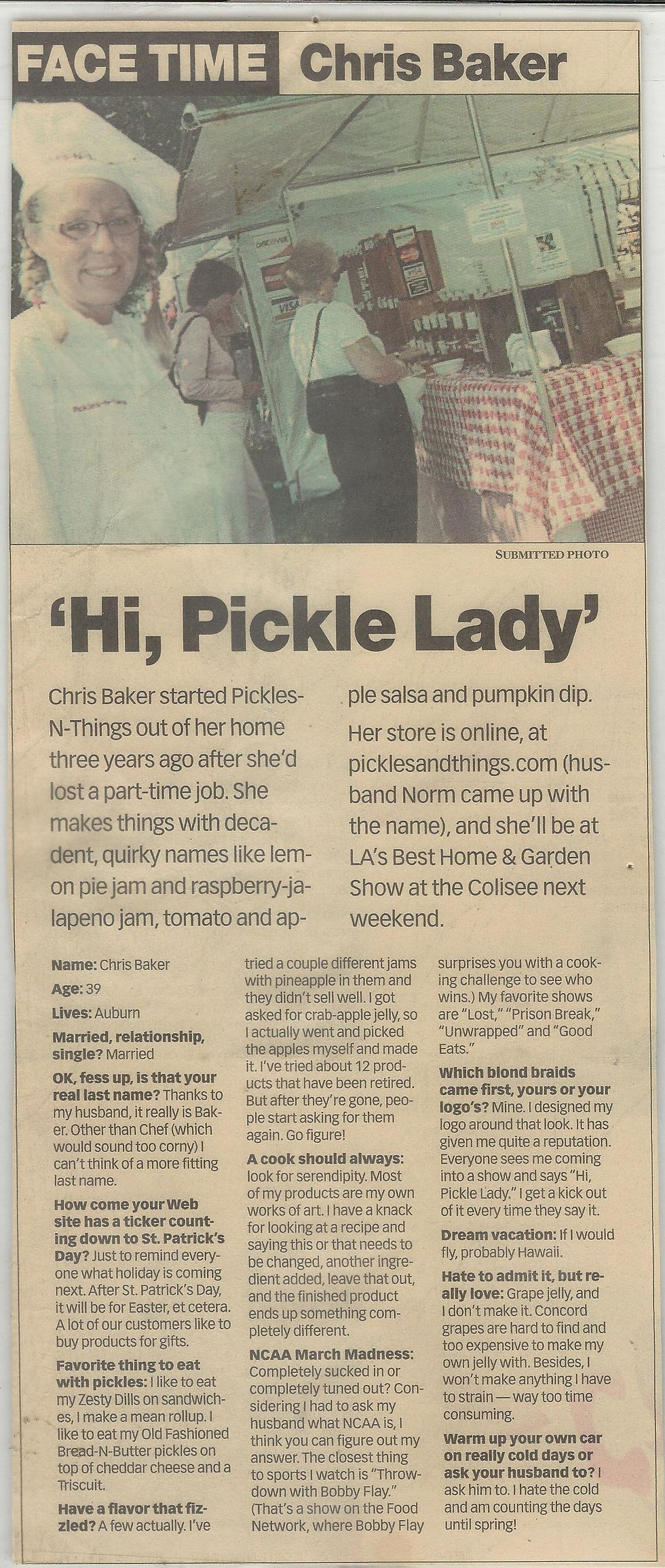 "Face Time" March 11, 2007The Pickle LadyMar 11, 20071 min readChris was the featured "Face Time" article in the Sun Journal on Sunday, March 11th, 2007. #news #sunjournal #2007